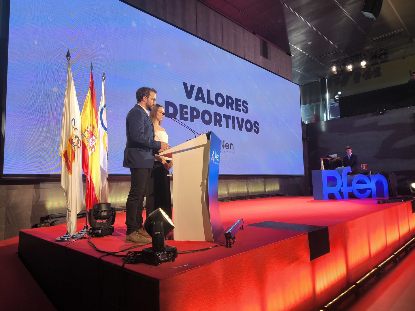 También enorme el homenaje a los tres campeones mundiales de natación artística Lilou Lluís, Dennis González y, sobre todo, Iris Tió, cuya gesta retumbó en todo el escenario del Auditorio Alfredo Goyeneche en Madrid. Sin volvidar al resto de compañeras: entre todos, 9 medallas en el Mundial. Carles Coll no pudo recoger su premio, pero se vistió de gala y desde EEUU se sintió muy honrado y agradeció mucho este gran reconocimiento.