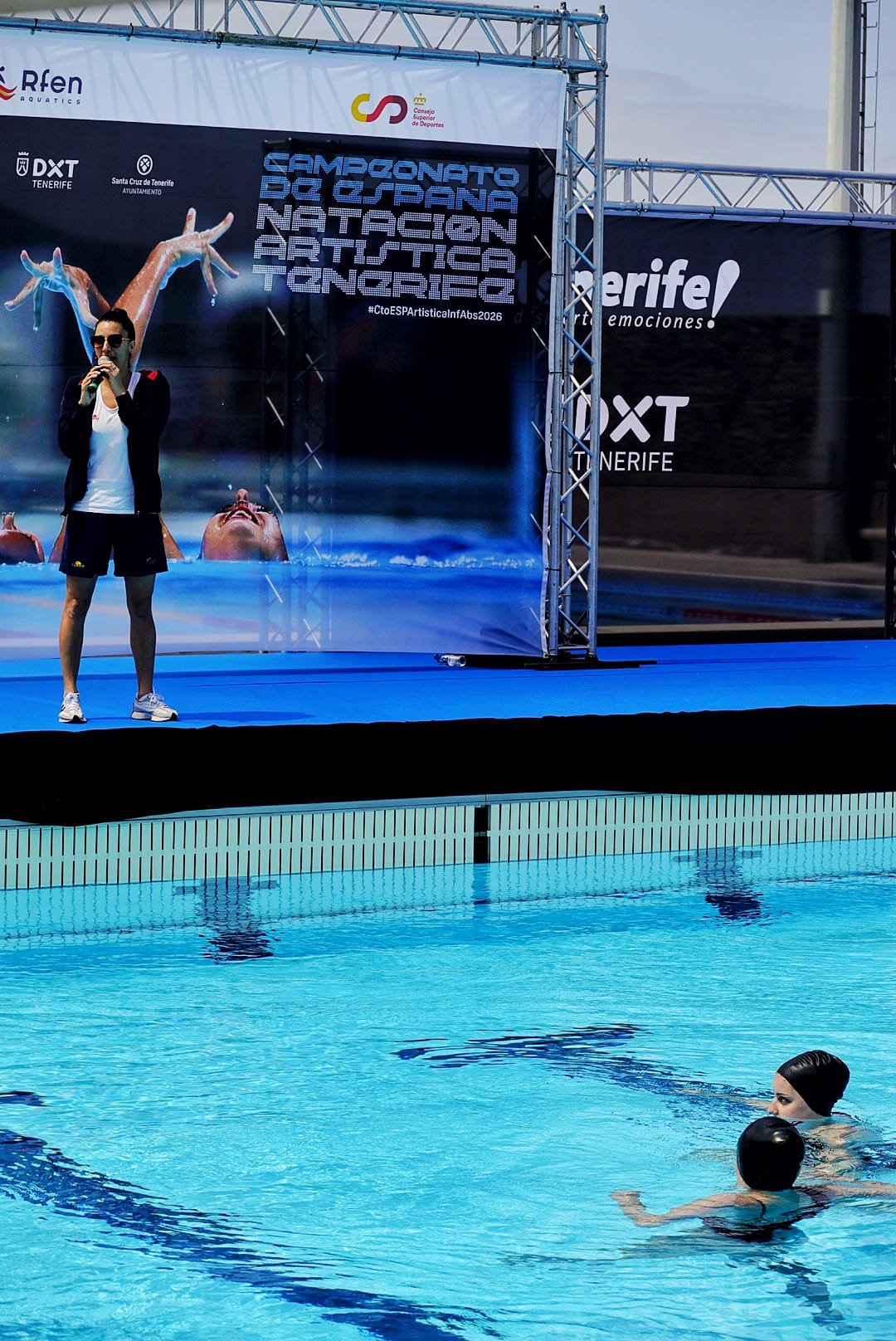 La presencia de la seleccionadora del Equipo Nacional Andrea Fuentes ha copado el protagonismo en una matinal de competición espectacular. Fuentes, al frente de la selección absoluta de artística desde agosto de 2024, es una de las deportistas más laureadas a nivel nacional. Y su presencia en un campeonato de este calibre no hace sino añadir relevancia y dimensión a lo que estos días se desarrolla en las flamantes instalaciones del Centro de Deportes Acuáticos de Puerto de la Cruz.