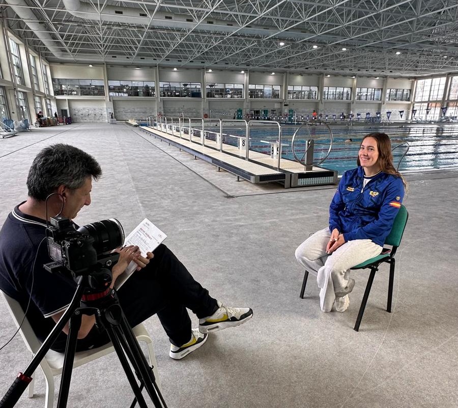 Foto: Paula Otero, entrevistada por RFEN Aquatics en Inacua Málaga días atrás / Rfen